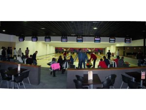 Bowling avec 8 pistes synthétiques, approches bois, équipées de bumpers.