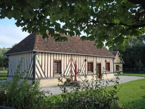 Maison normande indépendante. Séjour avec coin-cuisine, 1 chambre (1 lit 2 pers.), salle d’eau, WC indépendant. Étage : coin salon en mezzanine (canapé-lit 2 pers.d’appoint, radio/lecteur CD), 1 chambre (1 lit 2 pers.), cabinet de toilettes avec WC. Chauffage électrique. Terrain non clos de 1 200 m². Dépendance en colombage. 2 Salons de jardin, barbecue, garage; Linge de toilette et de maison fournis.
